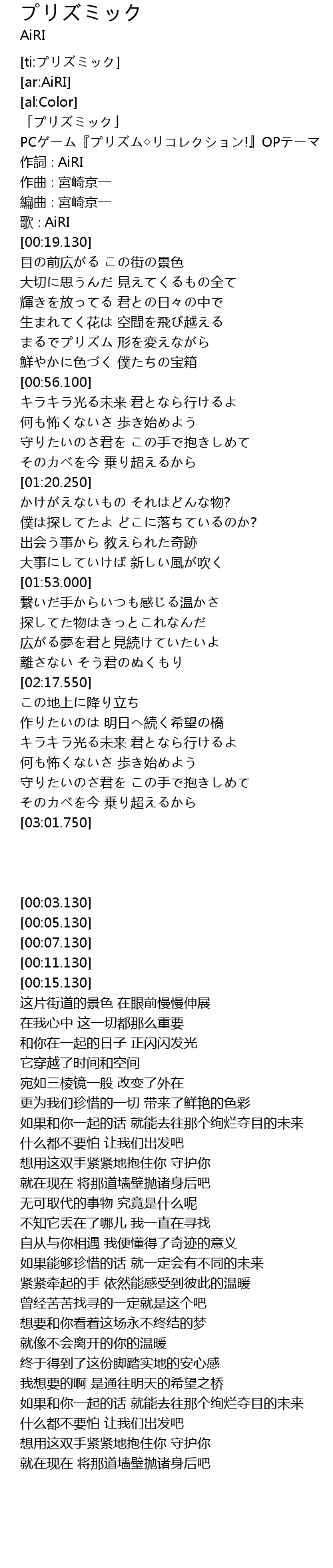 プリズミック 歌词 歌词网